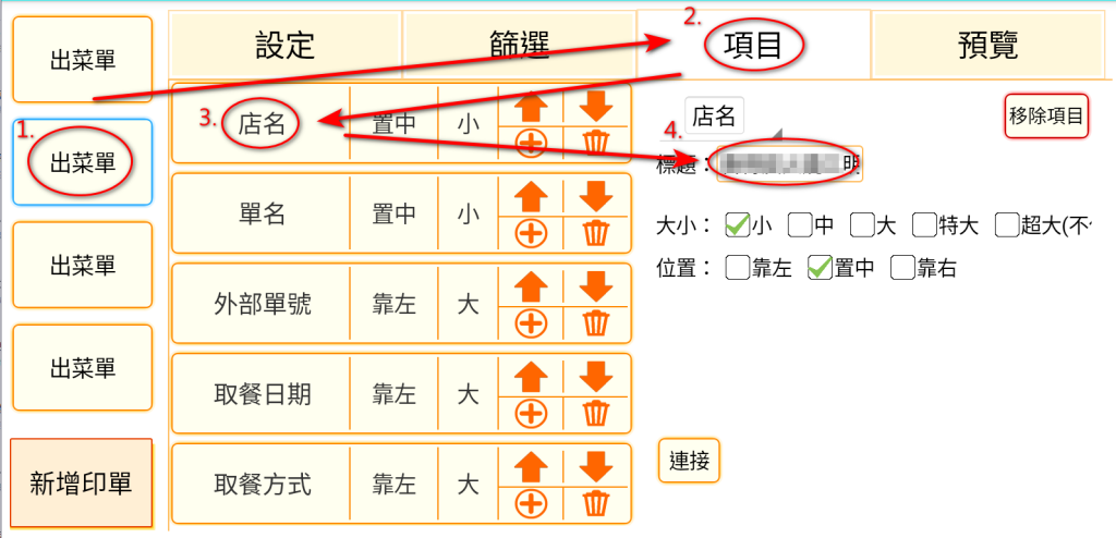 請點右上角功能表,到印單設定找到每一張單子