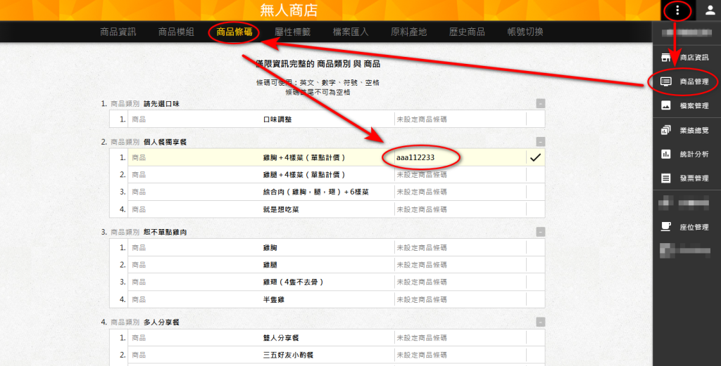 請利用POS帳號密碼登入後台,依照下方圖示輸入自行產生的有效條碼