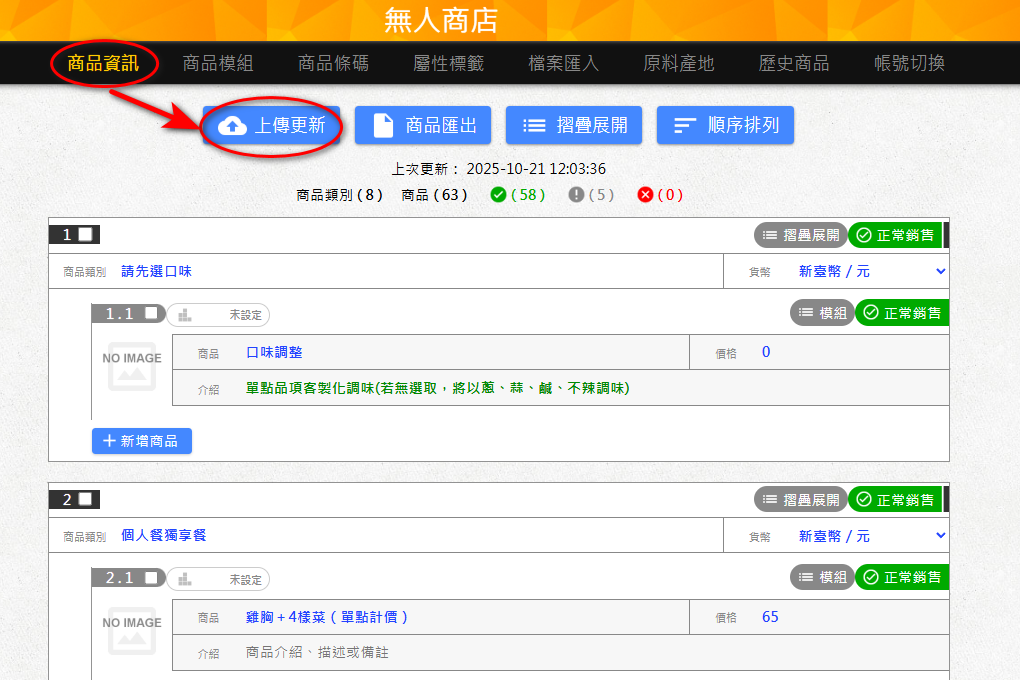 輸入完成旁邊打勾後請到商品資訊裏面上傳更新才算成功哦