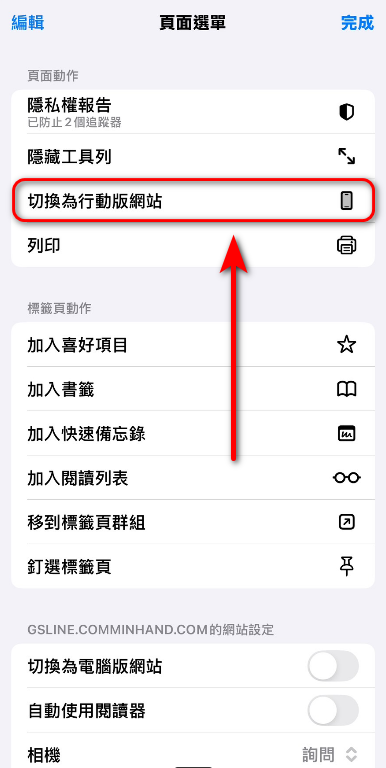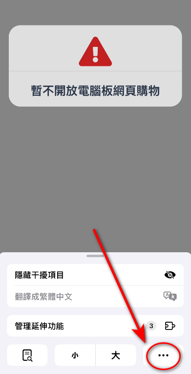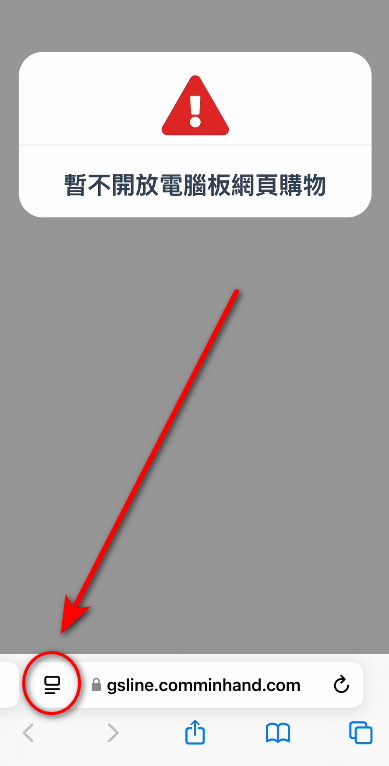 會顯示圖一畫面代表手機有按到使用電腦版網頁,請改回手機版(行動版)即可